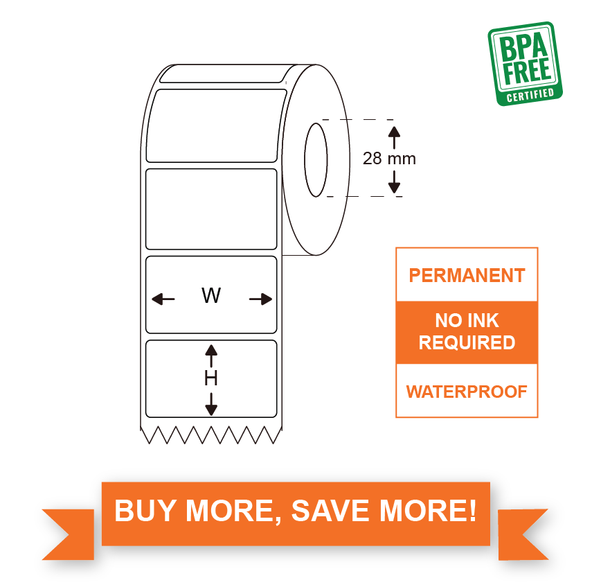 Direct Thermal Synthetic Labels 32mm(W)*24mm(H), Removable Adhesive, 2000 Labels/Roll